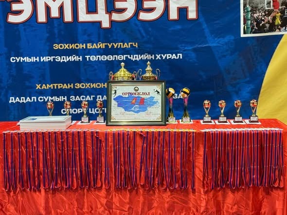 ВОЛЕЙБОЛЫН СПОРТЫН МАСТЕР Я.ОЧИРБАТ АГСНЫ НЭРЭМЖИТ ӨСӨХ ИРЭЭДҮЙТЭЙ ТАМИРЧНААР С.МӨНХСОЛОНГО, Н.ОЮУНБААТАР НАР ШАЛГАРЧ ЦОМ МӨНГӨН ШАГНАЛААР ШАГНАЖ УРАМШУУЛЛАА.